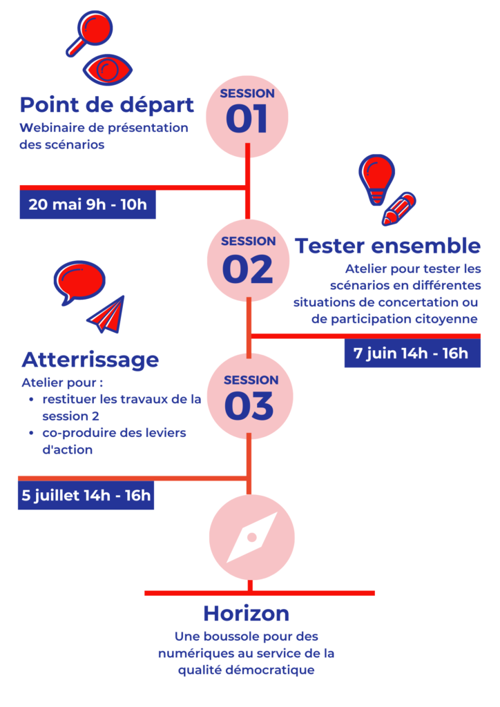 Si les technologies et leurs usages ne sont pas à la hauteur des enjeux démocratiques, il est possible de les faire bifurquer et d’imaginer des “futurs souhaitables”. C’est le pari que nous souhaitons faire avec ce cycle de trois sessions !
